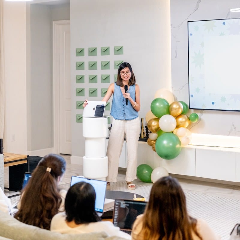 Get the community, coaching, & course where you'll learn how to market, sell, and deliver on repeat so you can make a full-time income from your signature creative service.